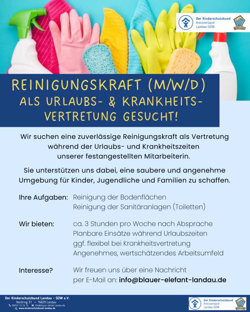 Wir suchen eine Reinigungskraft (m/w/d) als Urlaubs- und Krankheitsvertretung.